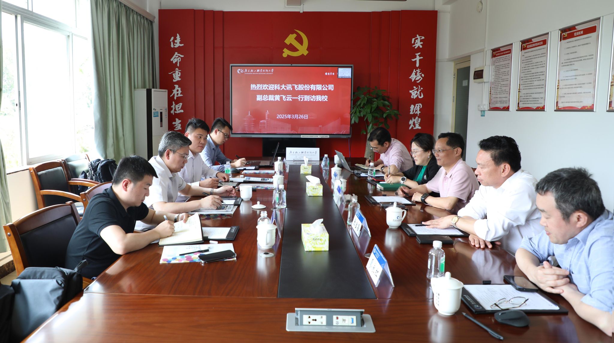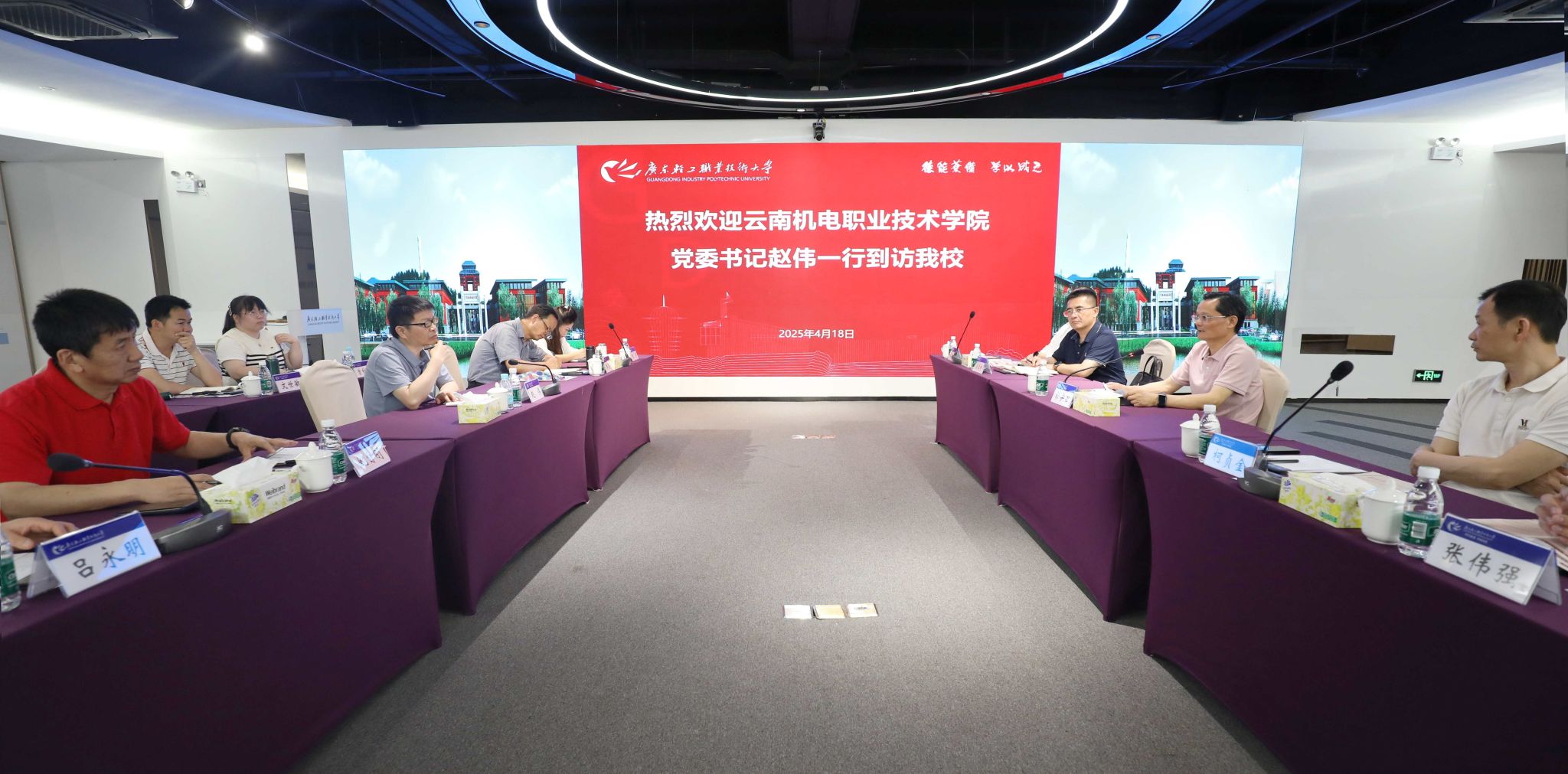 4月18日上午,云南机电职业技术学院党委书记赵伟一行九人到访我校,学校党委书记杜安国接待来访客人并陪同参观了国际创意谷、教育部高校思想政治工作创新发展中心(广轻工)、广生科生命健康产业学院、多功能展示中心等地。随后,双方在多功能展示中心进行座谈,杜安国在会上对来访客人表示欢迎,并…