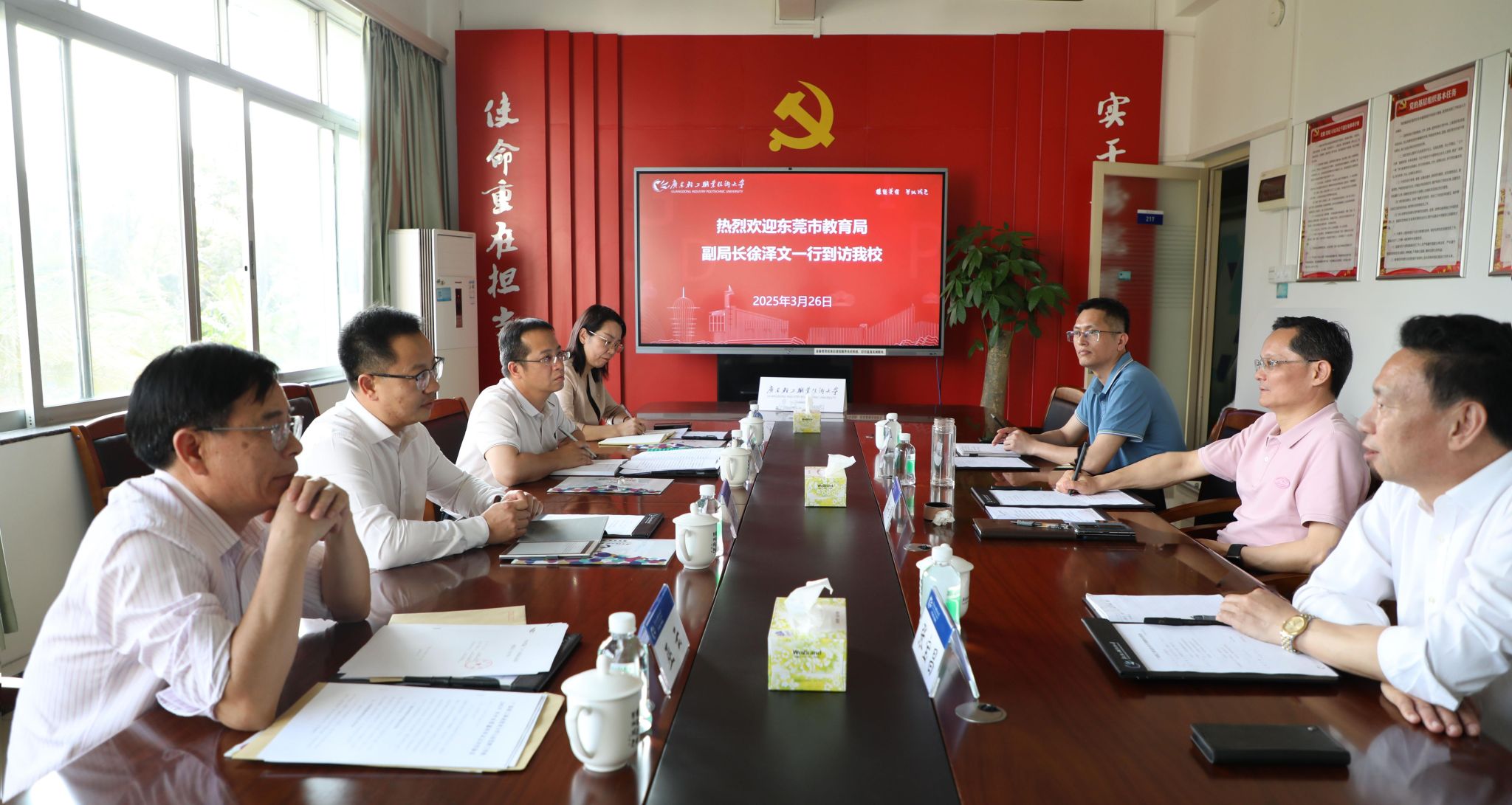3月26日下午,东莞市教育局副局长徐泽文一行五人到访我校,学校党委书记杜安国在新港校区办公楼二楼会议室接待来访客人并开展座谈。座谈中,杜安国对徐泽文一行的来访表示欢迎,并介绍了学校办学情况及专业(群)建设等的做法和经验。双方就贯通培养、“双师型”教师培育等方面的内容进行了深入交流,…