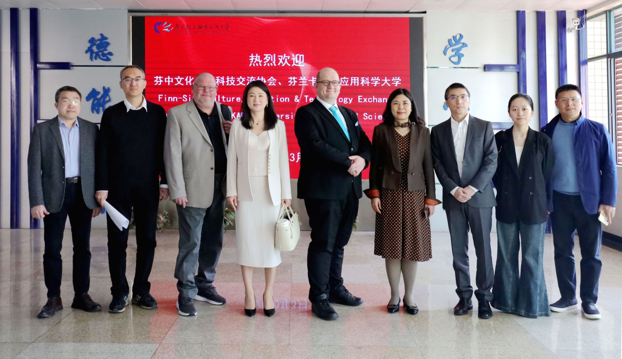 3月20日上午,芬兰卡亚尼应用科学大学校长Matti Sarén、副校长Jari Kahkönen等一行5人到访我校。学校党委副书记梁艳珍在南海校区北区接待了来访客人。Matti Sarén一行参观了智能制造与装备学院、人工智能学院实训室。在工业机器人实训中心,详细了解了我校“教学工场+技能竞赛+产业学院”三位一体的…