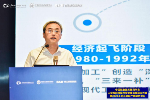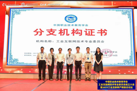 2023年5月16-17日,中国职业技术教育学会工业互联网技术专业委员会成立大会暨2023工业互联网产教融合论坛在广东佛山顺利召开。中国职业技术教育学会会长、教育部原副部长鲁昕,教育部职成司综合改革处二级调研员李红东,广东省教育厅二级巡视员吴艳玲,工业与信息化部教育与考试中心张任,广东轻工职业技术学院党委书记杜安国、学校校长卢坤建,中国工业互联网研究院总工程师王宝友,中国科学院计算技术研究所研究员、分布式系统研究中心副主任、中科南京信息高铁研究院副院长田霖等领导和专家出席。会议以线上、线下相结合的方式举行。来自全国各职业院校、科研院所及企业200多名会员单位代表线下参会,3000余人线上参会。