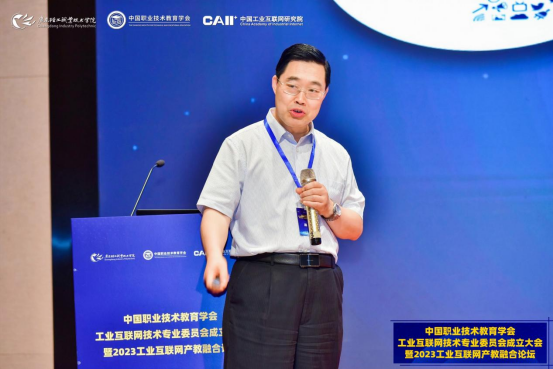 成立大会后,会议举行了2023工业互联网产教融合论坛,邀请来自相关领域的院校领导和企业专家作报告。中国工业互联网研究院总工程师王宝友做了题为《产教融合推动工业互联网创新发展》的主题报告。从国家的工业数字化政策的发布实施,数字经济发展现状策,二十大报告对高质量发展的重要论述以及我国目前的工业化和制造业发展现状等方面入手介绍了工业互联网在新一代工业革命的基石作用。并从政策协同,学科专业建设,构建协同育人生态等方面对工业互联网人才培养提出了宝贵建议。