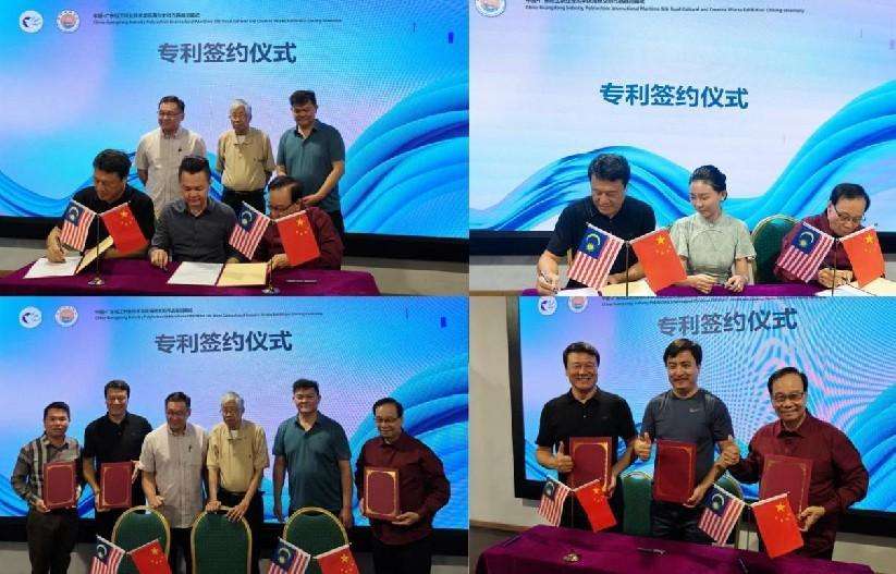 此外,闭幕式上还举行了海丝文创作品知识产权授权使用签约仪式。马来西亚龙马进出口公司(LongMa Import & Export Sdn Bhd)、南洋草药有限公司(Nan Yang Herbs Sdn Bhd)、马中全球教育咨询公司(MC Global Eduinfo Sdn Bhd)、博灵公司(Boling Realty Sdn Bhd)的代表与广东轻工职业技术学院代表和国际郑和研究院代表,签署了“郑和纸雕灯”“双面拼图”“撑花伞”“郑和IP”等10件套海丝文创作品的独家知识产权授权使用协议。