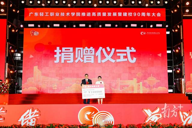 11月11日,广东轻工职业技术学院(下称“广东轻工”)迎来建校90周年,召开广东轻工职业技术学院推进高质量发展暨建校90周年大会。社会各界人士齐聚广东轻工,捐赠共计1100多万元,助力广东轻工教育事业发展。