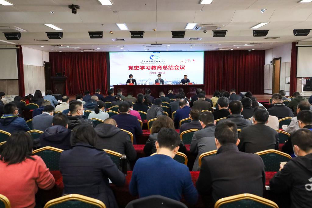 1月20日下午,学校在新港校区第二实训楼903室召开了党史学习教育总结会议。省委教育工委党史学习教育巡回指导组组长贺勇、副组长陈军、组员于丽平、联络员谢思麒、学校领导班子成员及全校党员近1800人线上线下出席,党委书记杜安国做党史学习教育总结。