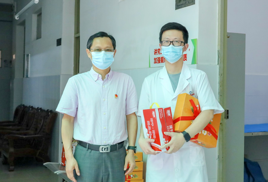 4月13日,学校党委书记杜安国、党委副书记梁艳珍、副校长邓毛程到南海校区慰问疫情防控一线工作人员。