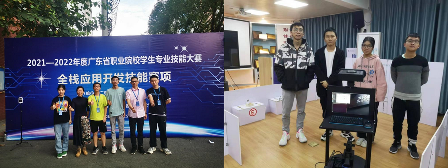 5月25日,在“全栈应用开发技能”赛项中,来自广东省29所高职院校54支队伍参加。信息技术学院彭选荣、李超老师指导的计算机201朱铭治、杨楚加及计算机202周艺恒、林冠伶等学生团队组成的两支队伍分别获得一等奖、二等奖。