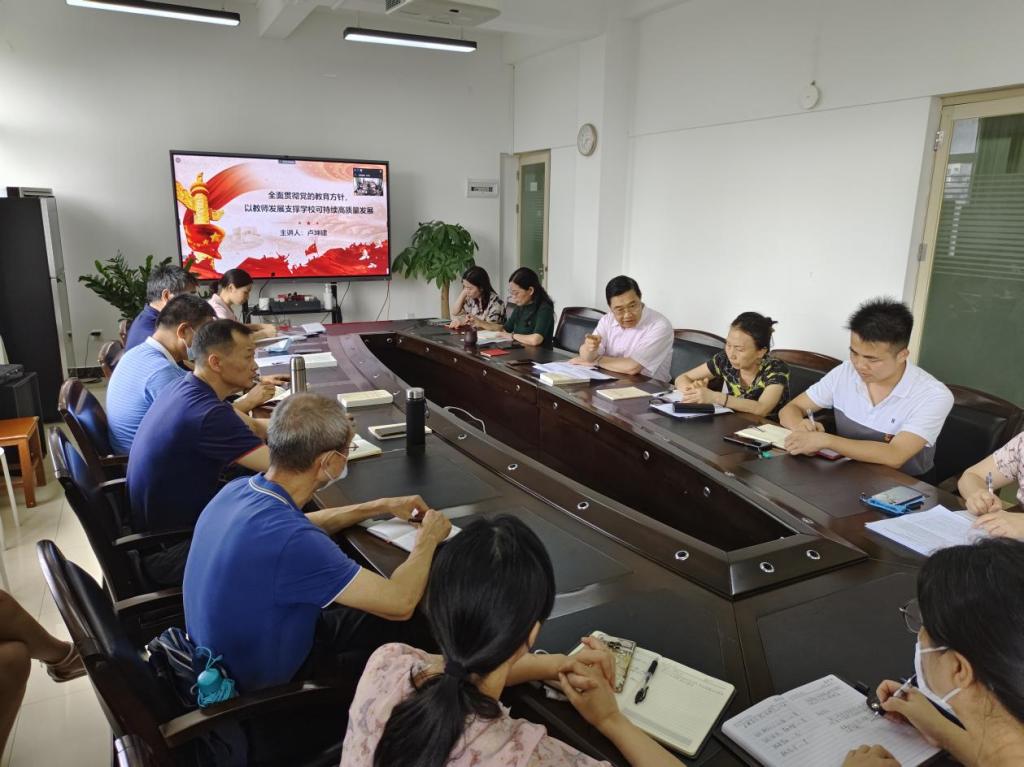 6月6日下午,校长卢坤建在办公楼三楼会议室为校办党支部、审招财党支部、规划发展中心党支部、马克思主义学院与机电技术学院党员代表等讲授“全面贯彻党的教育方针,以教师发展支撑学校可持续高质量发展”专题党课。