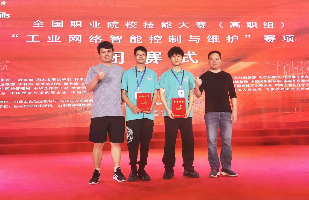 8月14日至17日,2023年全国职业院校技能大赛(高职组)“工业网络智能控制与维护”赛项在包头职业技术学院举行,来自全国76所高职院校的76支参赛队伍同台比拼、切磋技艺。由我校机电技术学院电气自动化专业梁文康和方文辉两位同学组成的代表队团结拼搏、沉着应战,最终脱颖而出,荣获二等奖,指导老师为王芳楷、高又春。