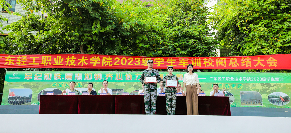 梁艳珍和邓毛程代表学校分别作军训工作总结,向广州市海珠区人民武装部、全体承训教官和老师表示感谢,向圆满完成军训任务的各位同学表示祝贺。并希望同学们继续发扬军训中焕发出来的好精神、好作风,把军训成果转化为优良的学风、校风,争取更大的荣誉和成绩。希望同学们在未来的学习生活中,始终恪守“德能兼备、学以成之”的校训,不负韶华,砥砺前行,努力成长为能够担当民族复兴大任的新时代大学生。(文/武装部 图/广轻融媒体中心)