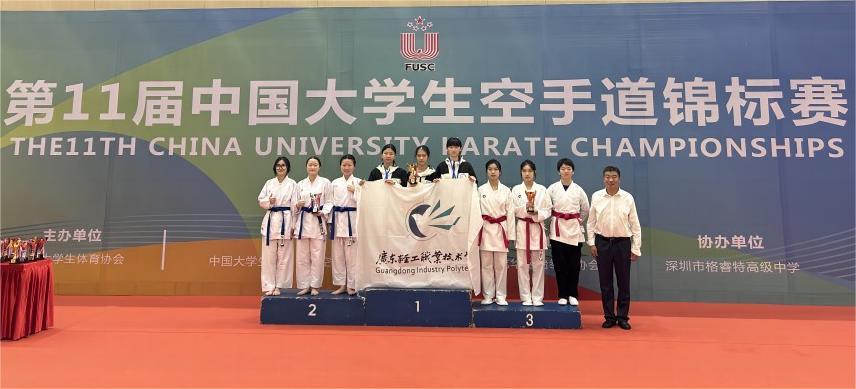 11月22-26日,第11届中国大学生空手道锦标赛在深圳圆满落幕。本次比赛由中国大学生体育协会主办,也是全国大学生级别最高的赛事,吸引包括北京体育大学等全国48所高校参加。我校空手道队派出6名运动员参赛,在领队杜少辉主任,教练员刘宁、陈清华、朱利兰老师带领下,顽强拼搏,勇夺3金3银3铜。其中,机制212常勇辉、网络221谭家盛、电气231杨松纬获男子团体型第一名,数媒212黄乐诗、商英211洪梓娴、营养221叶展桃获女子团体型第一名,数媒212黄乐诗、商英211洪梓娴、营养221叶展桃、机制212常勇辉、网络221谭家盛、电气231杨松纬获混合团体型第一名。数媒212黄乐诗获女子组手51kg第二名,网络221谭家盛获男子组手67kg第二名,数媒212黄乐诗、商英211洪梓娴、营养221叶展桃获女子团体组手第二名。机制212常勇辉获男子组手75kg第三名,营养221叶展桃获女子个人型第三名,机制212常勇辉、网络221谭家盛、电气231杨松纬获男子团体组手第三名。 3名教练员荣获“优秀教练员奖”称号;运动员黄乐诗获“体育道德风尚运动员奖”称号。