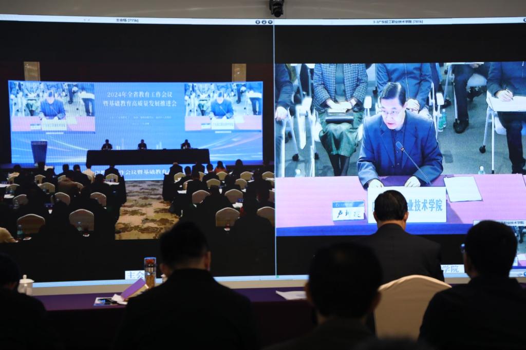 全体校领导,各职能部门负责人及二级学院院长、党总支(党委)书记在我校分会场参加会议。(文/校长办公室 图/广轻融媒体中心)