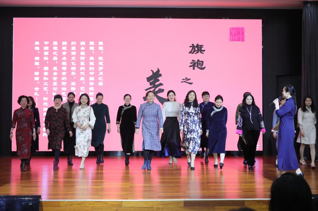 本次讲座主讲为深圳市工艺美术大师、中华旗袍馆馆长、唐颂品牌创始人唐光艳老师,她从旗袍的渊源、历程、工艺、知性代表人物、文化内涵、品鉴、着装原则、非遗传承等方面娓娓而谈,系统讲述了东方审美里最浓重的一笔——《旗袍之美》。讲座期间还穿插了旗袍礼仪及走秀指导、中国四大名锦、绫、罗、绸、缎面料鉴赏、手工盘扣体验等环节。凝瑞文化服饰公司董事长高彧军应邀来到现场,分享旗袍之美感受。整场活动别出心裁、引人入胜,理论与实物相结合,专业性强又生动形象,知识文化内涵丰富,为女教职工全方位展示了一场视觉听觉盛宴、服饰传统文化大餐。
