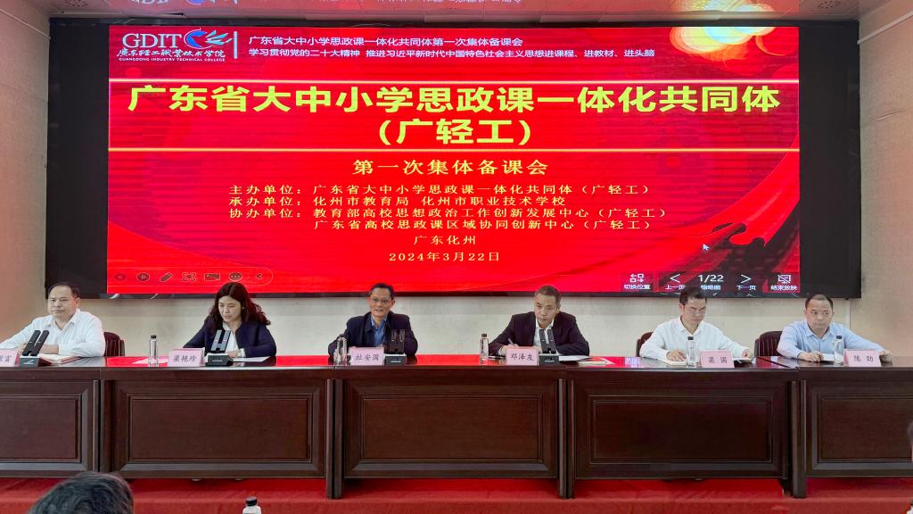 在习近平总书记“3·18”重要讲话发表五周年之际,3月22-23日,由广东省大中小学思政课一体化共同体(广轻工)主办,化州职业技术学校承办,教育部高校思想政治工创新发展中心(广轻工)、广东省高校思政课区域协同创新中心(广轻工)协办的大中小学思政课一体化首次集体备课会在化州举行。