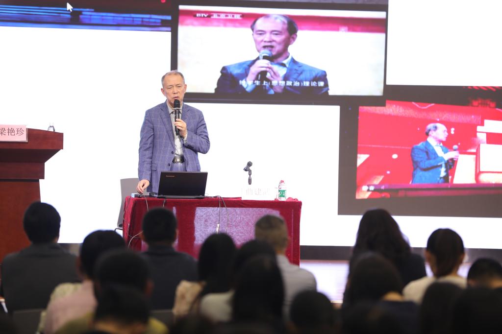 报告会以线上线下相结合的形式开展,学校各二级学院党总支书记、副书记、辅导员,学校团委、学生工作部、心理健康咨询中心全体成员和思政课专任教师等近200人于现场参加报告会;我校对口支援和“双百行动”结对单位、广东省“大中小学思政课一体化共同体”联系的化州市、德庆县、惠来县的中小学思政课教师,广东省“思政课区域协同创新中心”联系的16所职业院校以及“职业院校跨区域协同发展共同体”的21所职业院校的思政课教师、辅导员和思政工作骨干等以线上形式聆听本次报告。