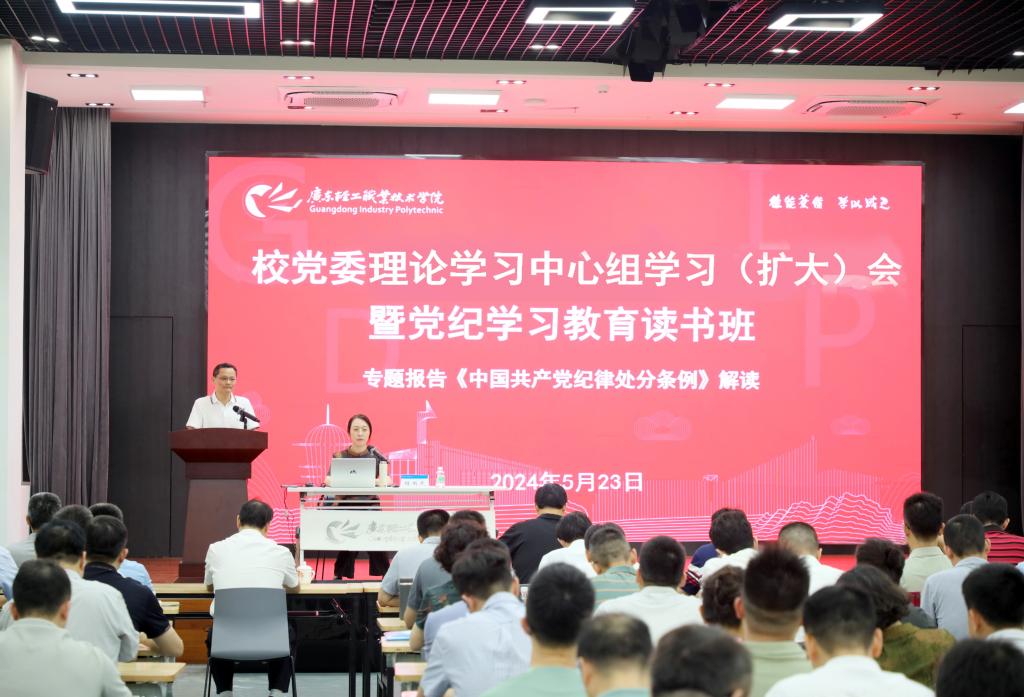 为深入学习贯彻习近平总书记关于开展党纪学习教育的重要讲话和重要指示批示精神,教育引导党员干部学纪、知纪、明纪、守纪,按学校党纪学习教育相关部署,5月23日,学校党纪学习教育读书班暨党委理论学习中心组学习(扩大)会在新港校区商演中心举行。学校党委书记杜安国主持学习会,广东省委党校教授程雨燕应邀作专题辅导报告。