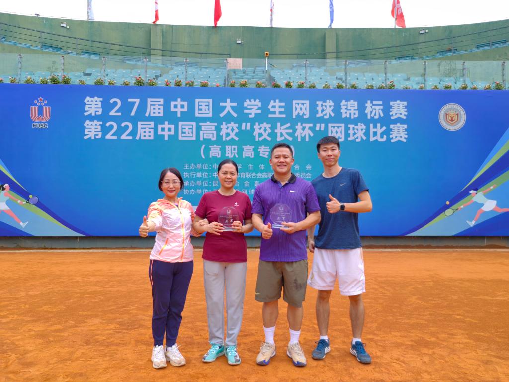 近日,第22届中国高校“校长杯”网球比赛(高职高专组)在云南昆明举办,来自全国各地共20多支参赛队伍、30多所院校共同参加了本次角逐。我校纪委书记余晓英、广东职业技术学院纪委书记姚清照组队参赛,克服了高原反应等种种困难,最终荣获亚军。这也是目前我校在该级别的网球赛事中取得的最好成绩。(图文/工会)