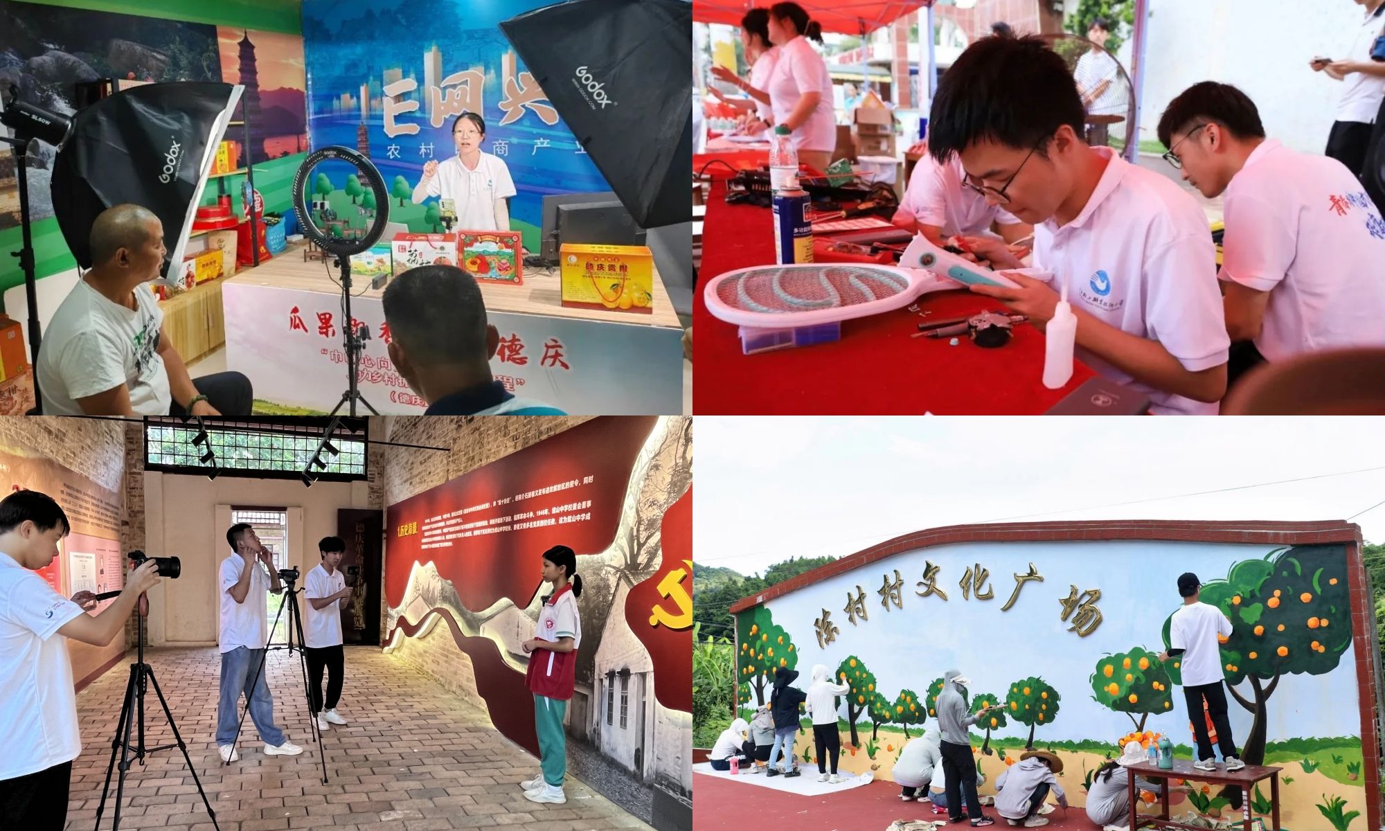 其中,“轻艺青年”突击队等7个队伍,在德庆县的马圩镇、官圩镇、回龙镇开展墙绘实践,今年以来已绘制了41幅文化墙绘,总面积约1000平方米。“数字科技人”突击队深入德庆县马圩镇和官圩镇实地调研、采集素材,利用互联网和大数据技术,搭建“数字乡村平台”,打造数字乡村云游空间。“轻科技赋能”突击队编写种植建议手册,在德庆县九市镇开展“新农人科技学堂”培训,师生自研的虫情监控设备能精准识别虫害类型,并针对性提出农药施用建议,赢得农户们的赞誉。