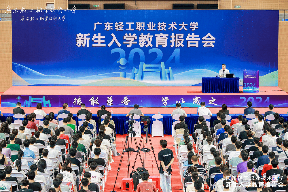 9月9日,学校2024级新生入学教育报告会在南海校区体育馆举行,新港校区大礼堂、学生社区思政场地和图书馆等多个分会场同步直播。此次报告会通过线上线下的方式同步开展,近1.5万名2024级新生参与:这既是新同学们的入学第一课,也是正式开启了广轻大在职业本科办学新征程上的新生入学教育系列课程。