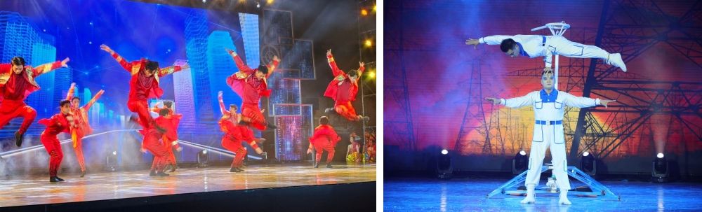 活动在舞蹈《热情的朋友来相会》活跃气氛中拉开帷幕,热情欢迎来自五湖四海的朋友们。随后,《平凡之光》《时代追梦人》《山歌唱出好兆头》《我们的新时代》《上春山·奔跑·不再犹豫》等节目以歌会友,唱响了新时代劳动的主旋律;舞蹈《彩云追月》《吾辈之风范》《大海之舞》以舞传情,舞出了劳动者奋发向上的光辉形象;曲艺《南粤工匠》、魔术《魔幻实验室》、杂技《铁塔上的骄傲》等构思别出心裁、技艺精湛,让人叹为观止,引爆全场。