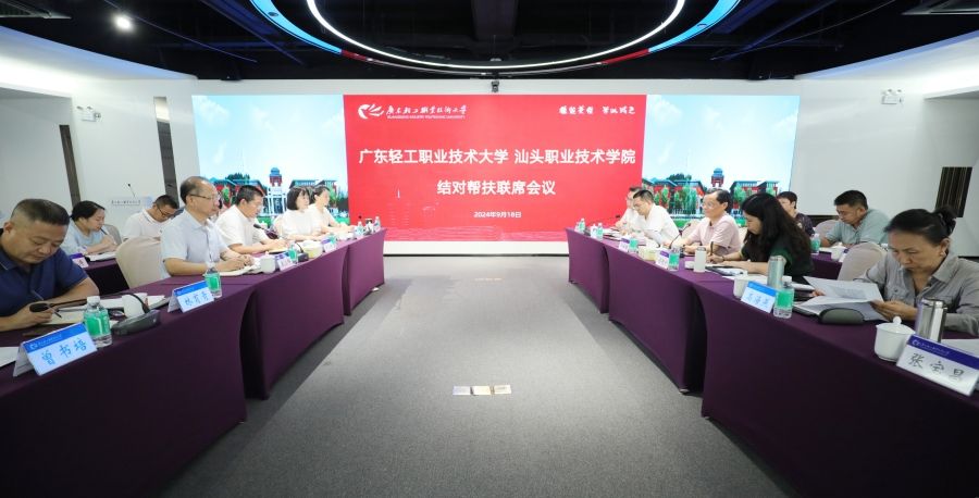 9月18日下午,学校与汕头职业技术学院结对帮扶联席会议在新港校区多功能展示中心举行。学校党委书记杜安国、汕职院党委书记王小辉,学校党委副书记梁艳珍等出席。
