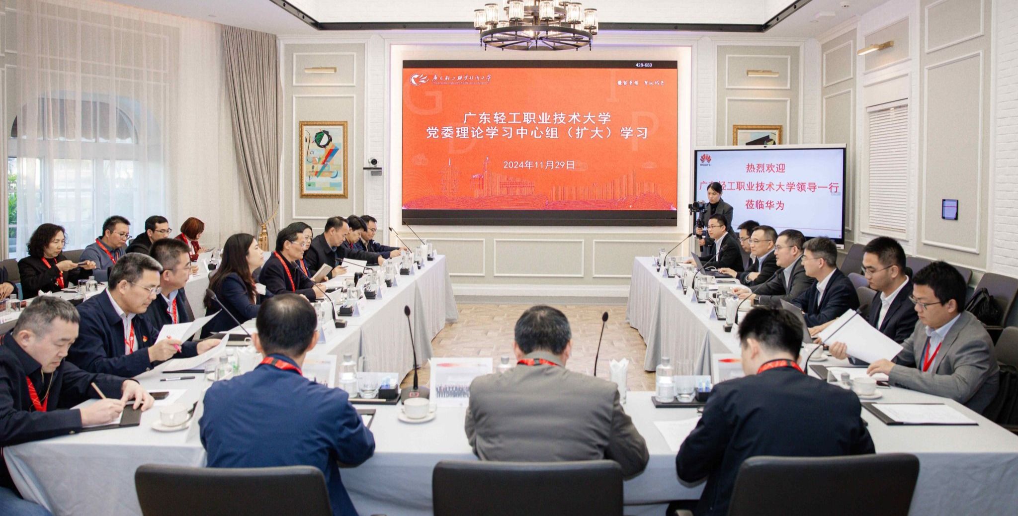 为认真贯彻落实党的二十届三中全会精神,深入学习贯彻习近平总书记关于加快发展新质生产力的重要论述精神,11月29日,学校党委书记杜安国带领理论学习中心组赴华为,围绕“推动人才链、教育链、产业链、创新链深度融合,更好服务区域产业高端化、智能化、绿色化转型升级”主题开展现场研学,并就强化校企联合推进科技创新、提升技能人才培养质量等方面与华为相关负责人进行深入交流探讨。广东省教育厅办公室(语委办)副主任、三级调研员秦显锋,一级主任科员杨永文列席旁听。