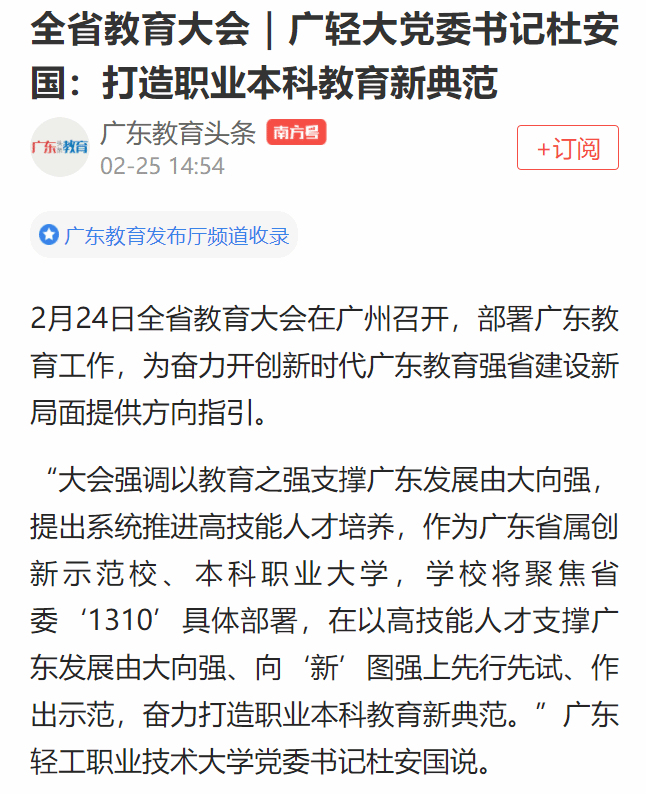 南方日报:全省教育大会|广轻大党委书记杜安国:打造职业本科教育新典范