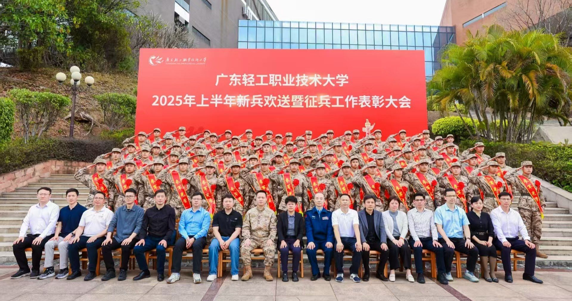 3月13日上午,我校在南海校区图书馆报告厅隆重举行2025年上半年新兵欢送暨征兵工作表彰大会,我校74名新兵光荣入伍。海珠区人民武装部政委程钢、南海区人民武装部副部长邓晓飞、学校副校长李荣出席。