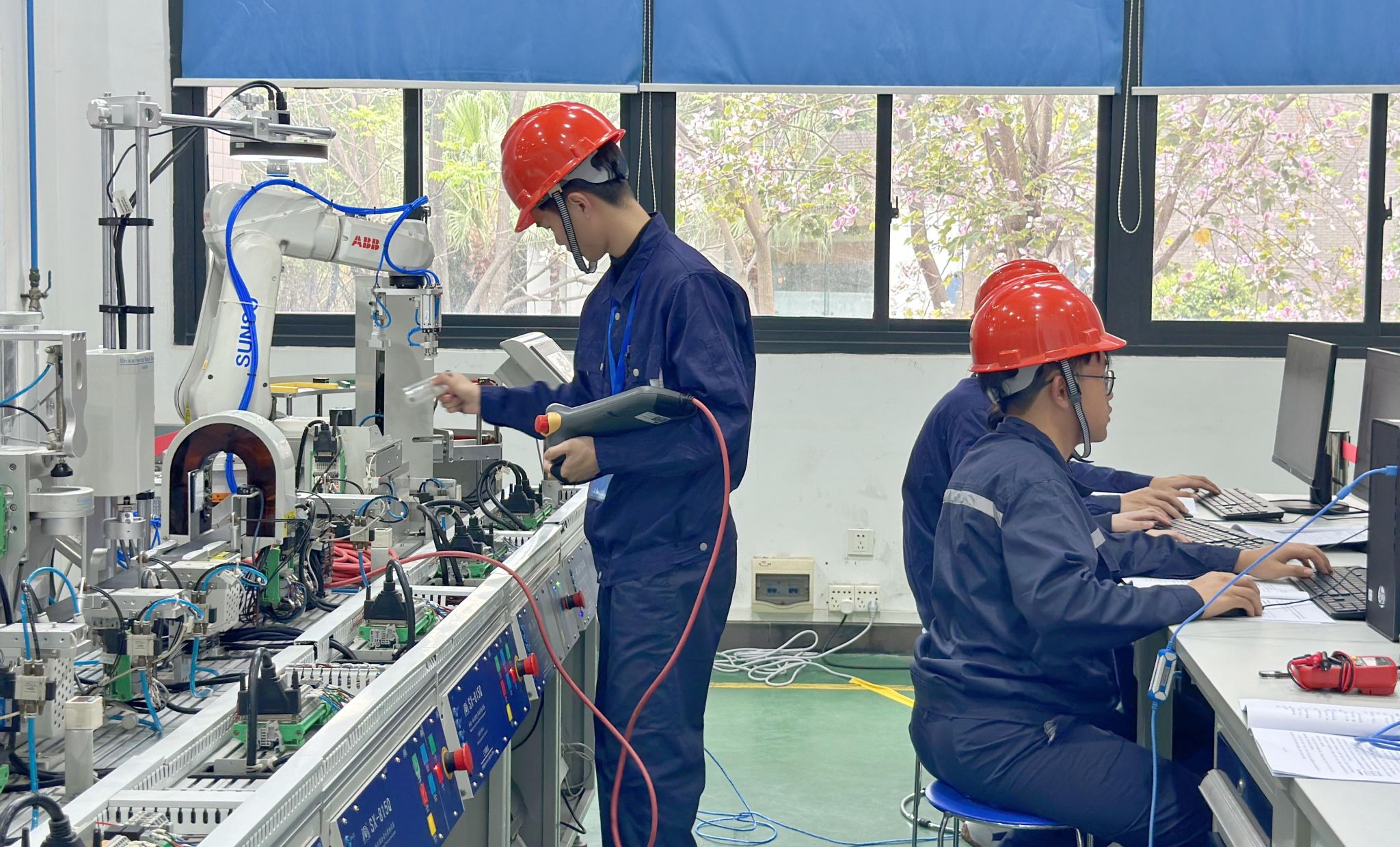 其中,智能制造与装备学院已连续6年承办了机电一体化技术赛项,今年首次采用“技能测试+综合展示”双模块赛制,涵盖编程调试、故障检修、系统优化等任务,全方位考察选手工程实践与团队协作能力。来自全省49所高职院校参赛。