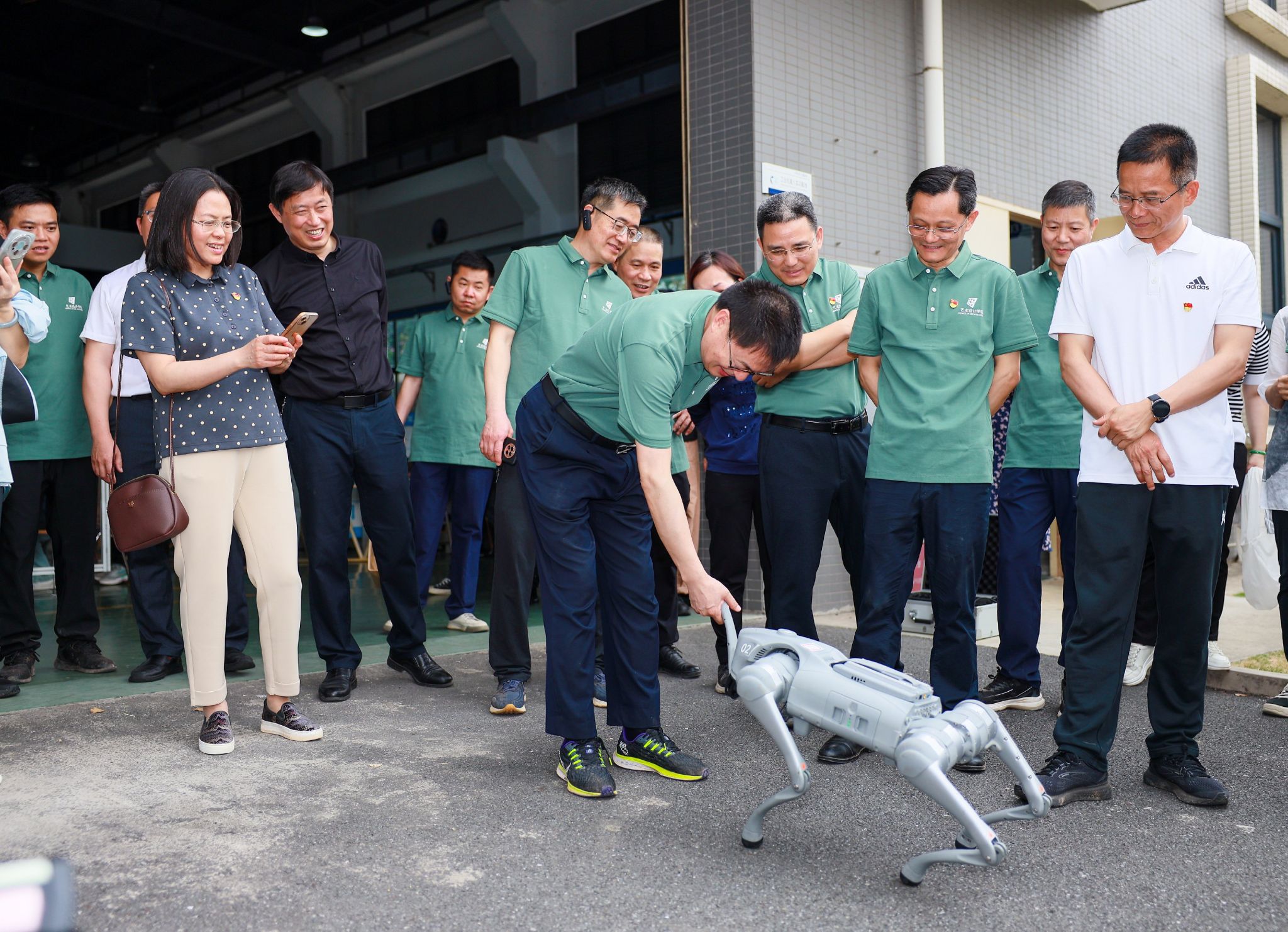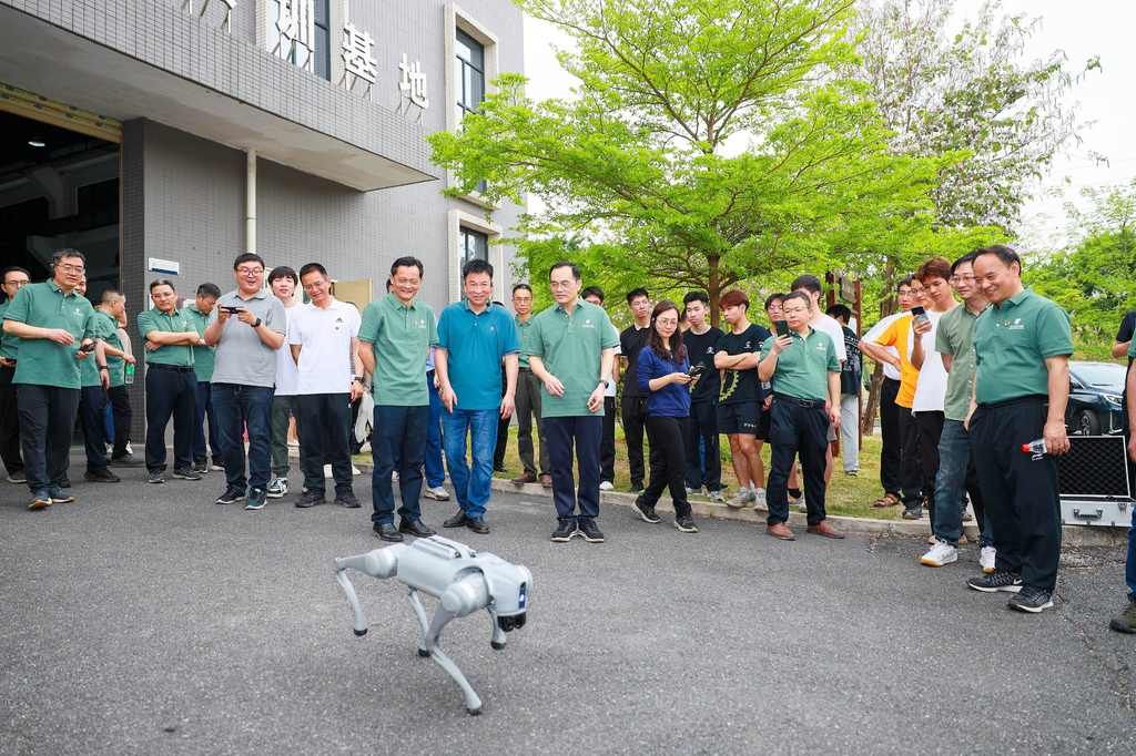 在智能制造实训基地,参加活动的党员参观了3D打印技术生产的水塔、滕王阁、人像扫描打印,了解了2025年中国国际大学生创新大赛项目《世界首创:异形内孔自适应磨抛倒圆去毛刺新技术与工具》,2025年广东省科技创新战略专项资金(大学生科技创新培育)项目《大规模储能用有机液流电池双极板轻量化设计和增材制造》,智能制造学院朱派龙教授科技论文转化为行业新型产品的介绍,观看了四足机器狗的“表演”。