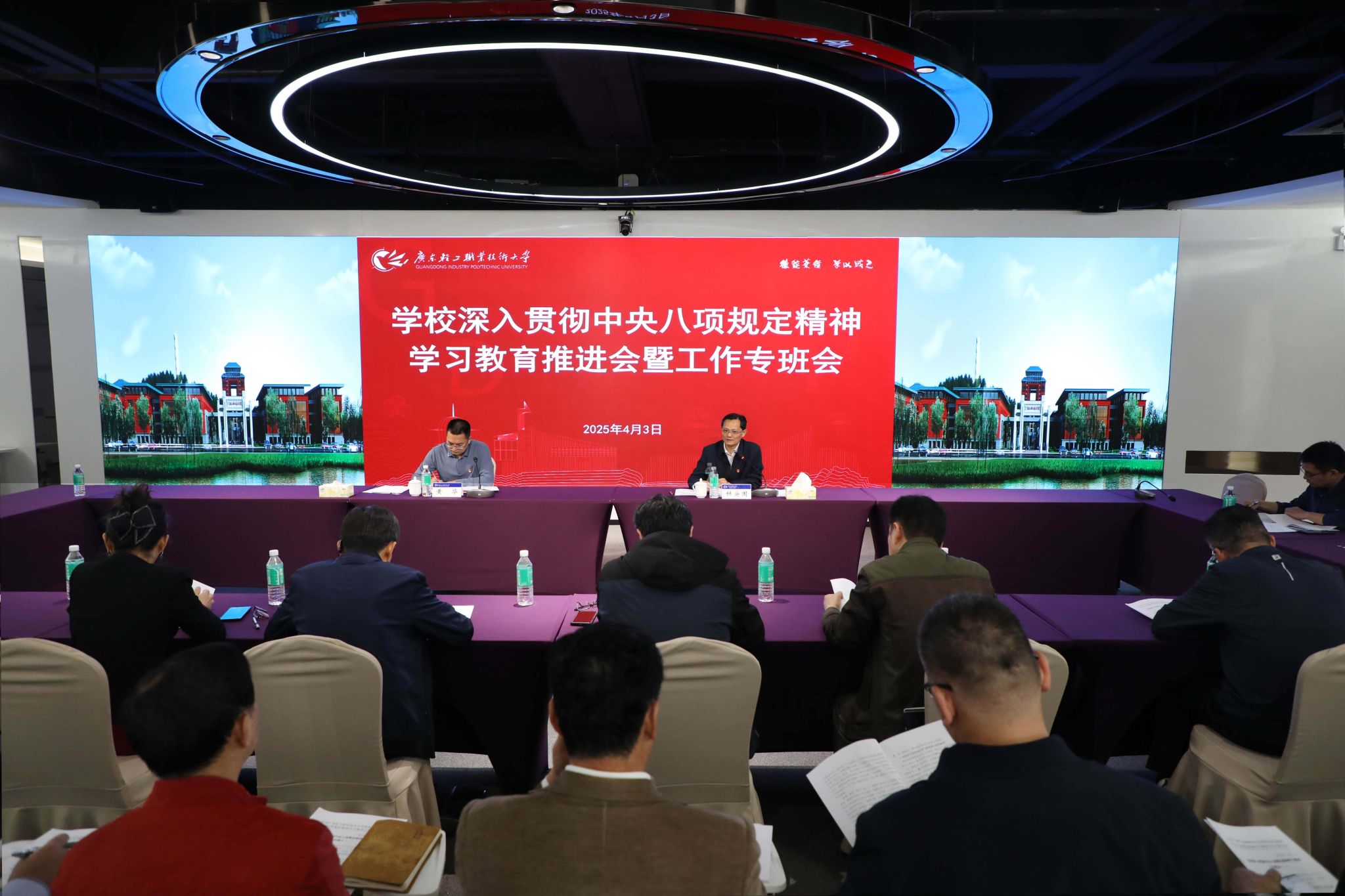 杜安国表示,开展好深入贯彻中央八项规定精神学习教育是今年学校工作的重点任务,要提高站位,增强认识,把思想和行动统一到中央部署和省委要求上来,保持头脑清醒,思想坚定,提升内涵,杜绝形式主义,着力推动我校学习教育走深走实;要认清形势,提高自觉,以高度的责任感和使命感将学习教育与学校内涵建设紧密结合,一体推进学查改,确保学有质量、查有力度、改有成效,以扎实作风、务实举措落细落实各项工作任务;要深查细照,抓实整改,坚持问题导向,认真开展自查自纠,确保件件有着落、事事见成效,把学习研讨、查摆问题、集中整治、开门教育等融入日常、抓在经常,通过学查改真正打造好一流职业本科大学的办学底座。