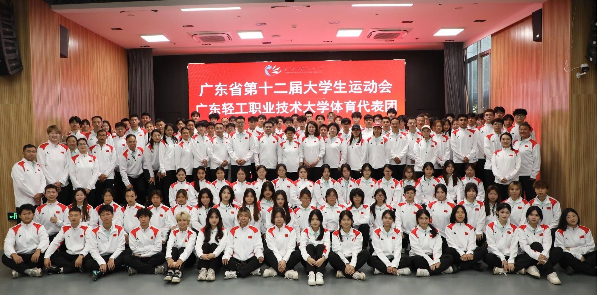 4月22日,我校在广州校区多功能商演中心举行广东省第十二届大学生运动会体育代表团誓师大会,副校长李荣作为我校体育代表团团长出席会议。本届大学生运动会,我校将派出涵盖田径、游泳、足球、武术等11个项目的代表队,共计126名运动员参赛。