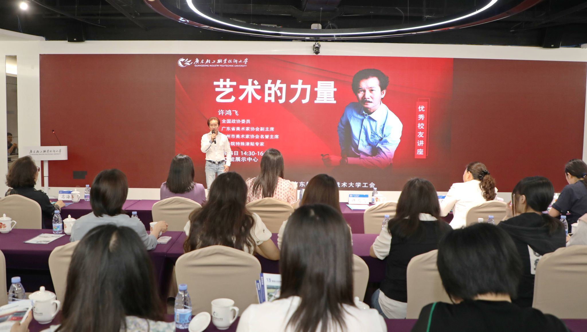 5月14日下午,“艺术的力量”许鸿飞雕塑讲座在新港校区多功能展示中心举行,省直机关部分女同志,学校党委副书记、纪委书记余晓英出席会议,党委副书记梁艳珍主持。