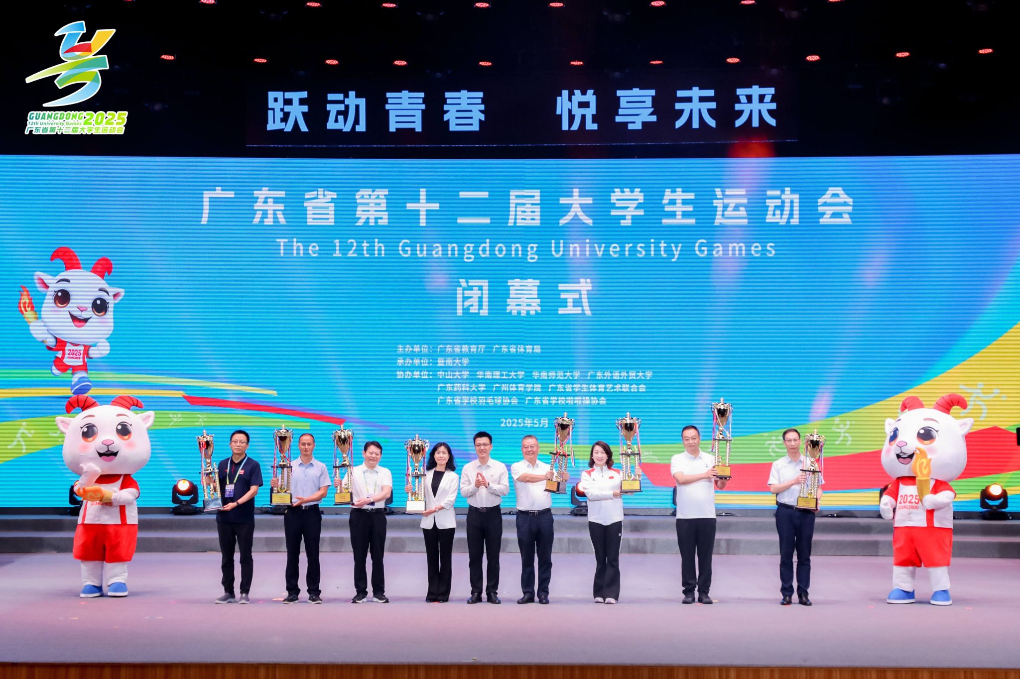 5月6日至5月29日,由暨南大学承办的广东省第十二届大学生运动会于广州落下帷幕,本届比赛汇聚了来自全省151所高校超过1.2万名大学生运动健儿参赛,共设置田径、游泳、啦啦操等12个竞赛大项,合计517个小项。我校派出涵盖田径、游泳、足球、武术等11个项目的代表队,共计126名运动员参加丙组比赛,共获得13金3银4铜,金牌数在全省参赛高校中位列前十,创下我校历届省大运会金牌数量新高。学校蝉联七届团体总分一等奖,并获得本届大运会“体育道德风尚奖”和“参赛优秀组织单位”。