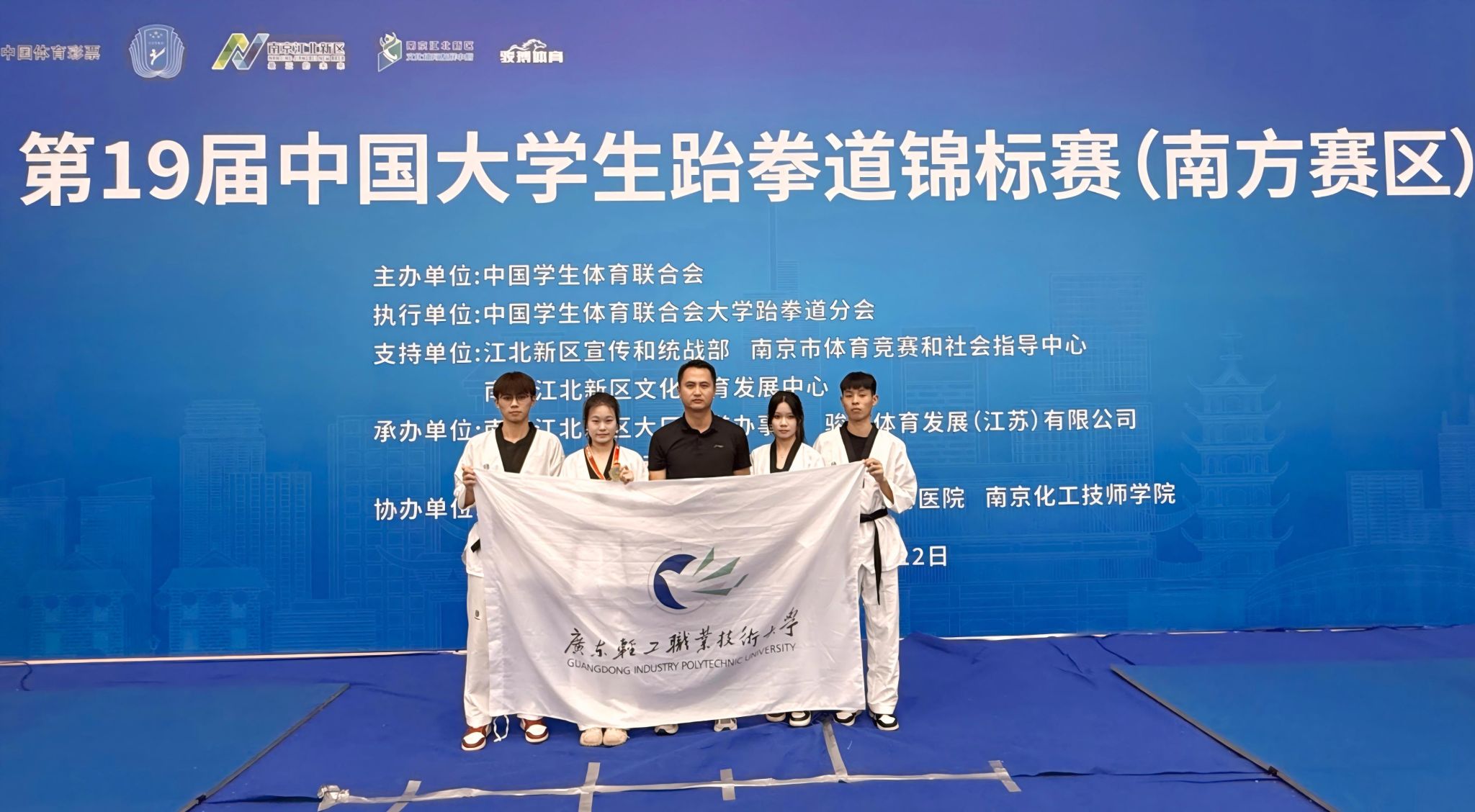 5月29日—6月2日,2025年广东省大学生跆拳道锦标赛在深圳举行,全省共63所高校,近400名运动员参赛。我校跆拳道队选派8名运动员,在领队陈绿波,教练员陈清华、刘宁、黄荣军的带领下,荣获1金3银1铜。其中,吴晓锐(精化232)获个人竞技57kg级冠军,陈晓田(化技242)获个人竞技63kg级亚军,李诗琪(护理241)获个人竞技46kg级亚军,黄健斌(空乘241)获个人品势高级组亚军,郑思敏(精化232)获个人竞技57kg级季军。