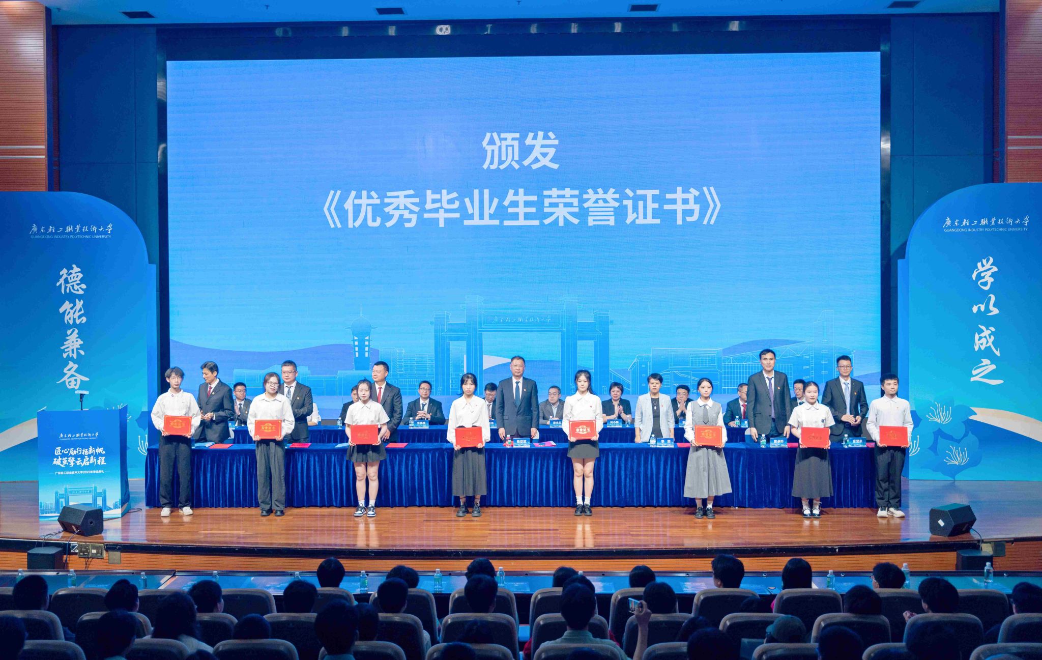 在南海校区北区举行的毕业典礼上,校领导给优秀毕业生颁发证书
