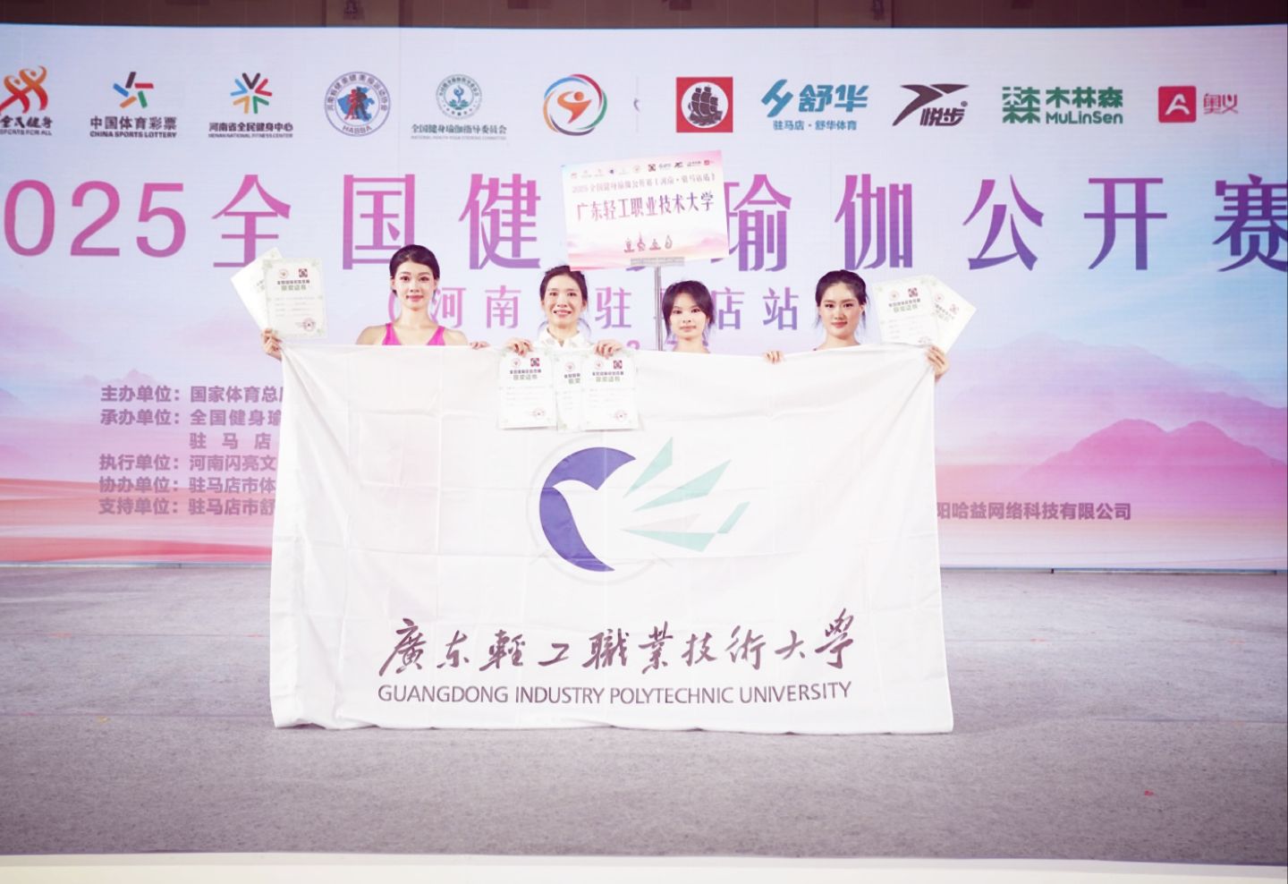 我校健身瑜伽队选派了3名运动员参加,荣获院校组女双冠军、女单季军及段位赛第一名。其中,冯露露(澳食222)、郭舒琪(空中乘务211)获女双冠军,廖艺红(工业互联网244)荣获女子单人季军;在段位赛中廖艺红以第一名成绩获五段一等奖;教练员郝卉参加职工组比赛,获得女单第四名和段位赛六段二等奖,同时还被主办单位评为优秀教练员。