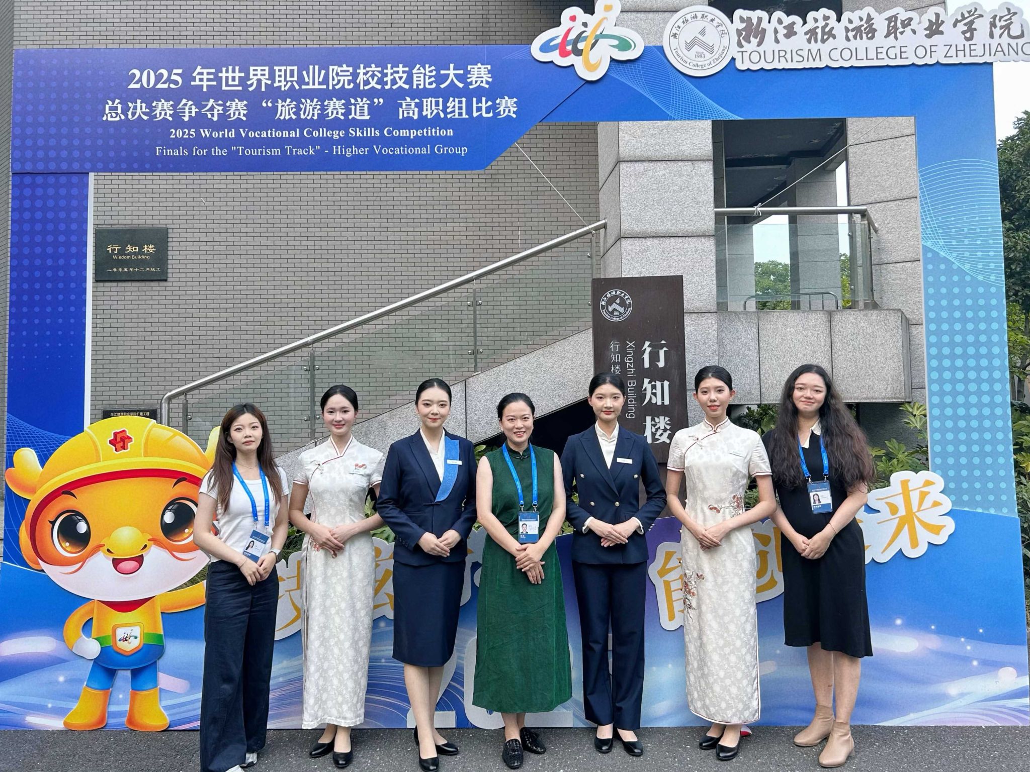 8月24—27日,教育部联合多家部委和事业组织共同举办的2025年世界职业院校技能大赛总决赛争夺赛“旅游赛道”在浙江杭州圆满落幕,我校派出1支队伍,由管理学院酒管222杨芮敏、鲁斯羽,酒管244陈展颜,酒管243刘语菲组成(指导老师:张维艺、林颖),斩获银奖。