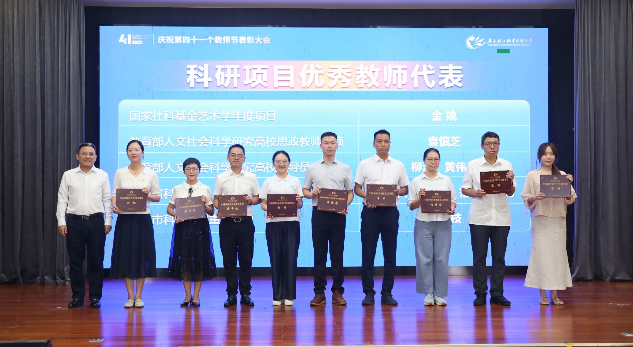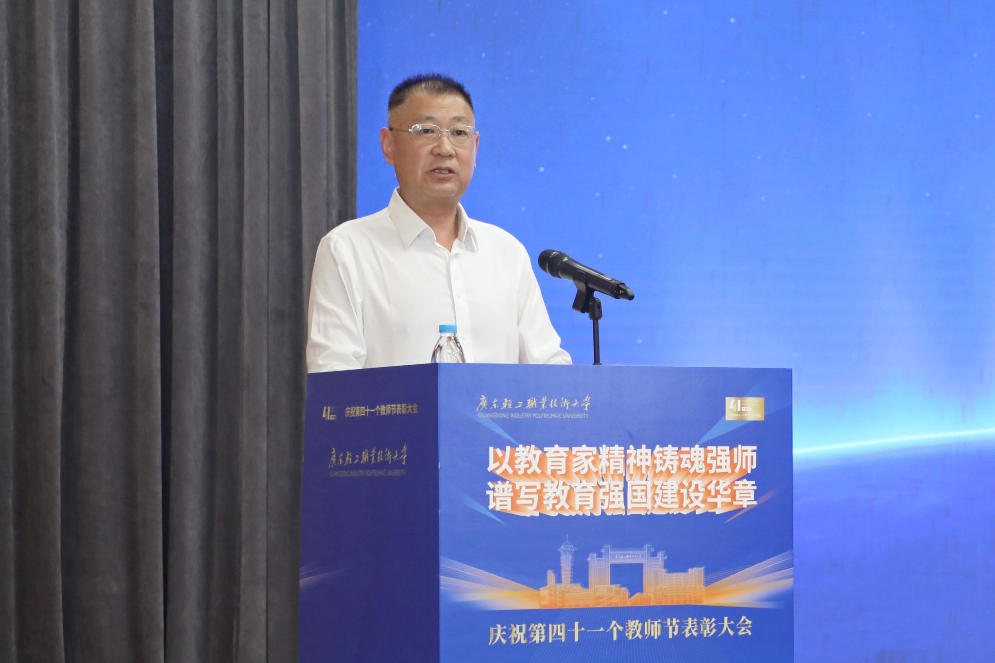 杨欣斌在致辞中向扎根职教沃土、默默耕耘的广轻人,致以敬意和节日祝福。他表示,回望过去,因团结奋斗而成就广轻高度,一代又一代广轻人秉持“自强、敬业、求实、创新”的广轻精神,取得一项又一项突破性的成绩。眺望未来,以团结奋斗而铸就广轻精彩,职业本科建设千帆竞发。强大的师资队伍是学校发展的 “定盘星”,是向更高水平迈进的“开拓者”和“主力军”。学校将持续优化教师发展生态,以更扎实的举措为大家成长铺路搭桥,以更暖心的服务解决老师们的后顾之忧,让每一位教职工都能在学校找到施展才华的广阔天地,拥有干事创业的坚实舞台。希望广轻大每一位教师坚定理想信念,言为士则、行为世范,既当传授知识的“经师”,也做培根铸魂的“人师”。