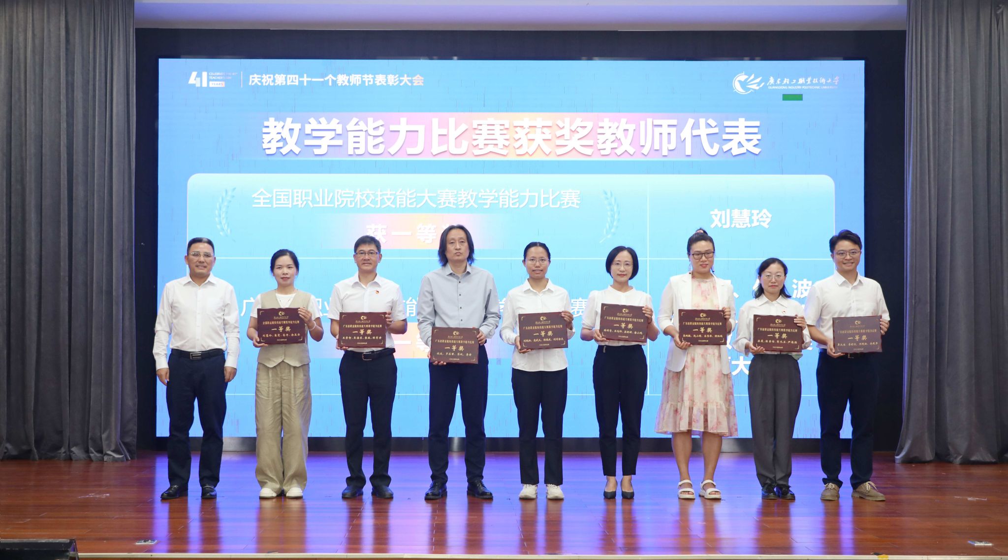 大会表彰了教学名师、技术能手、黄炎培职业教育杰出教师、省级人才教师,并向在“申本"、“双高”工作有突出贡献,在教学能力比赛、科研、指导学生竞赛等方面获奖的集体和个人颁发荣誉证书,大会还颁发了服务广轻三十年“孺子牛”奖及首届校级优秀教师、优秀教育工作者、优秀集体奖。