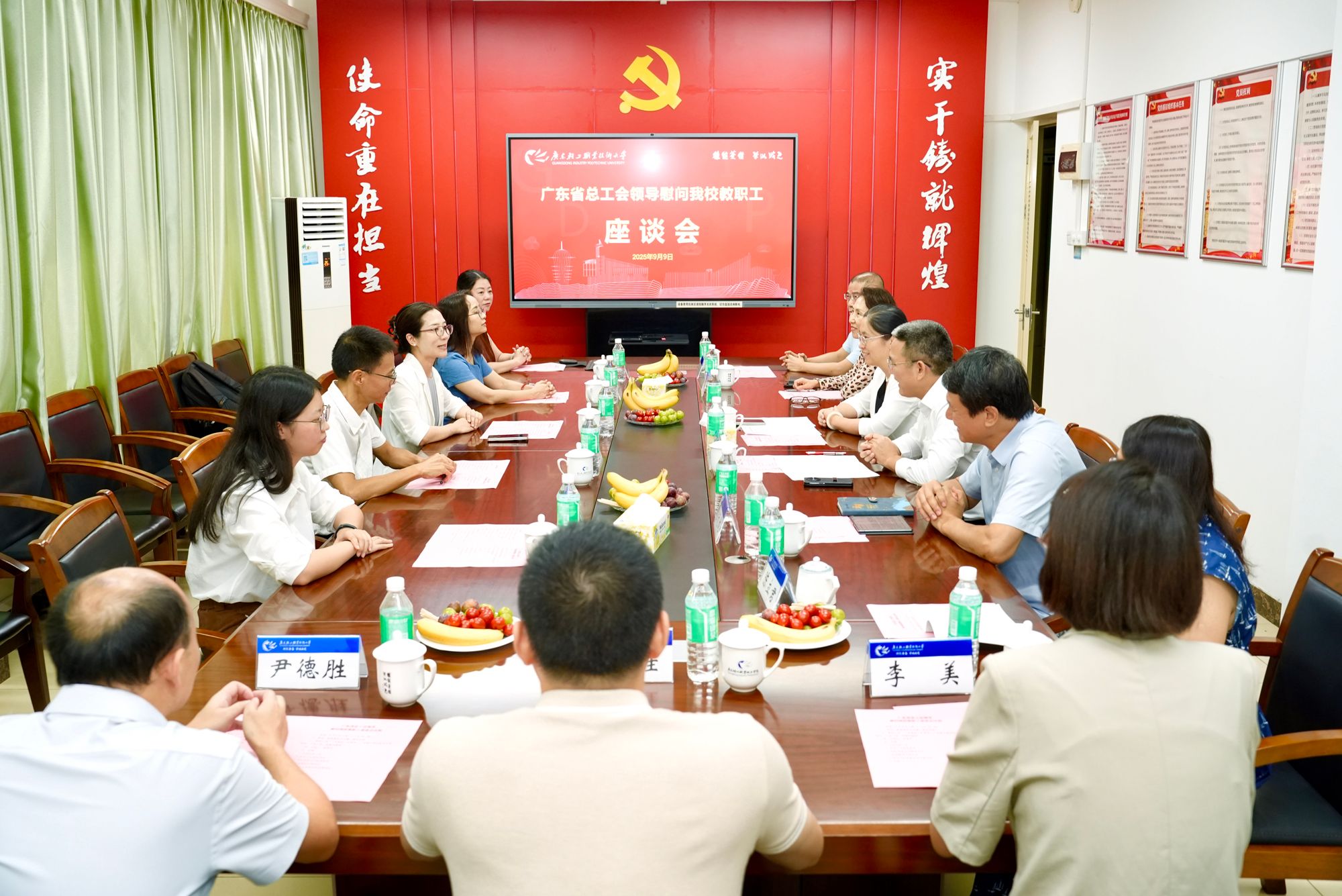 9月9日上午,在第41个教师节即将到来之际,广东省总工会党组成员、专职副主席袁子雅,广东省教科文卫工会主席、一级调研员谢岩梅,广东省教科文卫工会副主席胡建钢到我校慰问教职工。学校党委书记陈爽、副校长官春平出席了慰问座谈会。