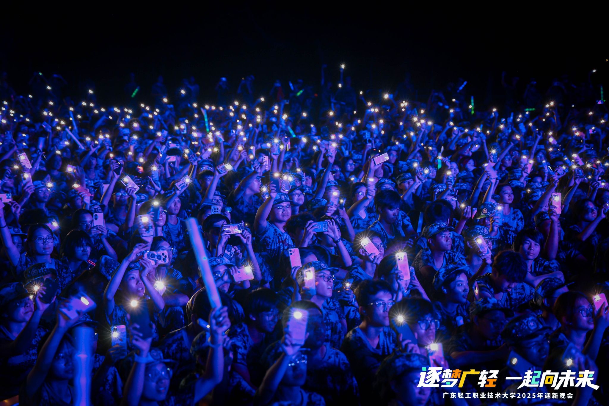 相关职能部门负责人,各学院党委(党总支)书记、副书记、辅导员、班主任、2025级新生超万人参加晚会。(图文:校团委)