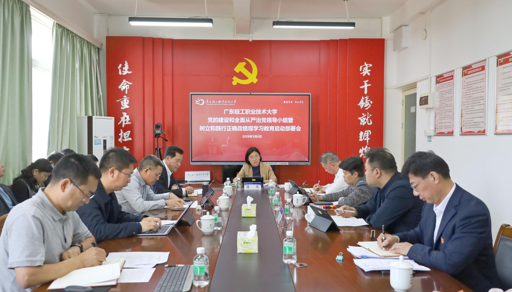 根据省委教育工委安排,3月6日下午,学校在新港校区召开党的建设和全面从严治党领导小组会议暨树立和践行正确政绩观学习教育启动部署会,认真学习贯彻习近平总书记关于树立和践行正确政绩观的重要论述精神,传达学习中央办公厅《关于在全党开展树立和践行正确政绩观学习教育的通知》和中央、省委党的建设工作领导小组有关会议精神,研究部署学校贯彻落实工作,启动树立和践行正确政绩观学习教育。学校党委书记陈爽主持会议并讲话,全体校领导参加会议。