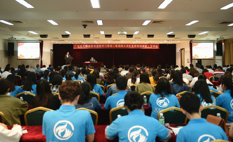 3月19日下午,学校在广州校区第二实训楼903和南海校区图书馆报告厅组织召开党委理论中心组学习(扩大)会议暨第八期“广轻大讲堂”活动,邀请省委宣传部讲师团团长李斌宣讲《粤港澳大湾区发展规划纲要》。校领导、副科级及以上干部、党支部书记、学生党员约500人分别在广州和南海两校区聆听了宣讲报告。党委书记杜安国主持宣讲会。