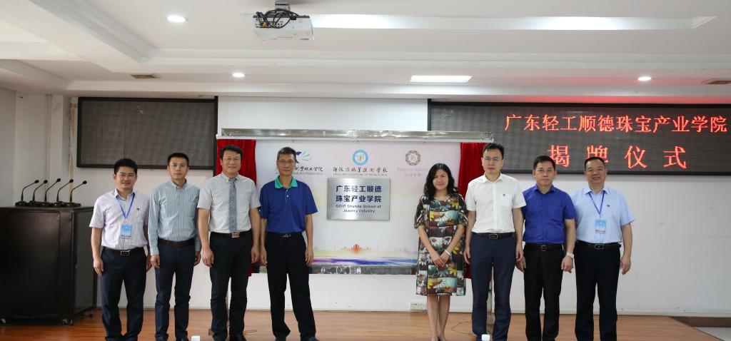 10月16日,广东轻工顺德珠宝产业学院揭牌仪式暨首届新生见面会在郑敬诒职业技术学校隆重举行。我校校企合作办主任李国杰、艺术设计学院院长桂元龙、副院长徐禹,郑敬诒职业技术学校校长李保俊、执行校长林家祥、党委副书记付卓文、副校长黎玉珊、陈义明,保发珠宝(中国)有限公司总经理李新辉、顺德区教育局高教职教科科长杨少琴、伦教街道教育局常务副局长张兆强等出席活动并为广东轻工顺德珠宝产业学院揭牌,推动政校行企协同育人迈出了坚实步伐。