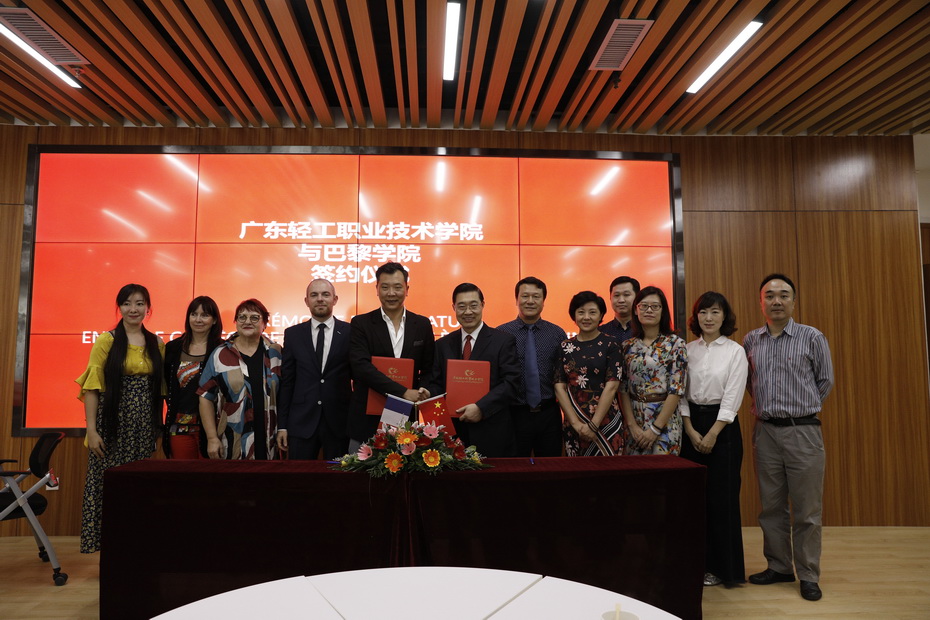 艺术设计学院院长桂元龙向代表团介绍了学院在专业群建设、杰出校友、竞赛获奖、国际化办学、“工学商一体化”人才培养模式等方面的办学成果及学院未来发展规划。在深入交流探讨后,我校与法国巴黎学院签署了合作备忘录。