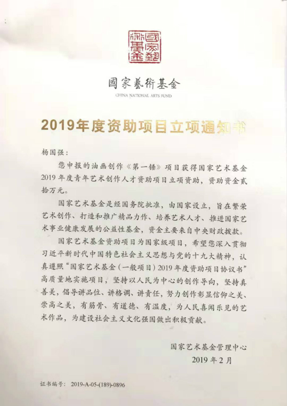 杨国强始终不忘发挥共产党员的先锋模范作用,用实际行动响应党和国家的号召,坚持把艺术理想融入党和人民事业之中,做到胸中有大义、心里有人民、肩头有责任、笔下有乾坤,推出了许多反映时代呼声、展现人民奋斗、振奋民族精神、陶冶高尚情操的优秀作品,为学校争得荣誉,为师生党员树立了榜样。
