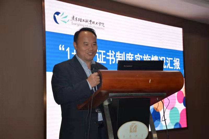 中山市教育和体育局、中山职业技术学院领导致辞,广东省教育研究院副院长李海东教授做工作部署,1+X证书制度研究交流会上,我校副校长廖俊杰应邀在会上作了“1+X证书制度研究课题评述及本校实施总结”的报告,介绍了我校1+X证书制度的人才培养体系和创新模式,展示了我校1+X证书制度试点项目实施过程的成果,分享了相关的经验,受到了参会者的高度好评。