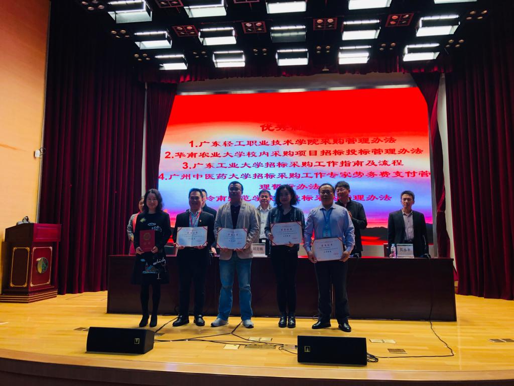 11月29日,在广东省教育厅办公室举办的2019年广东省教育系统政府采购工作培训会议上,开展了2019年广东省教育系统政府采购系列评选工作,《广东轻工职业技术学院采购管理办法》被评为“优秀制度”,我校是唯一一个获此奖项的高职院校。