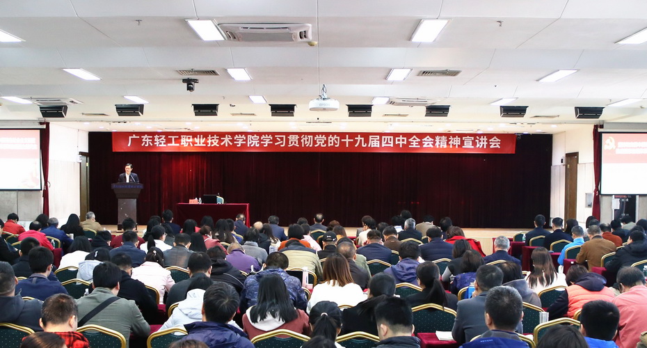 为更好理解、把握党的十九届四中全会的核心要义和精神实质,12月3日,学习贯彻党的十九届四中全会精神省委宣讲团成员、广东省人力资源和社会保障厅党组成员、副厅长葛国兴应邀来我校作宣讲。学校领导班子成员与全校党员干部、师生党员、离退休党员一起参加学习。党委书记杜安国主持宣讲会。