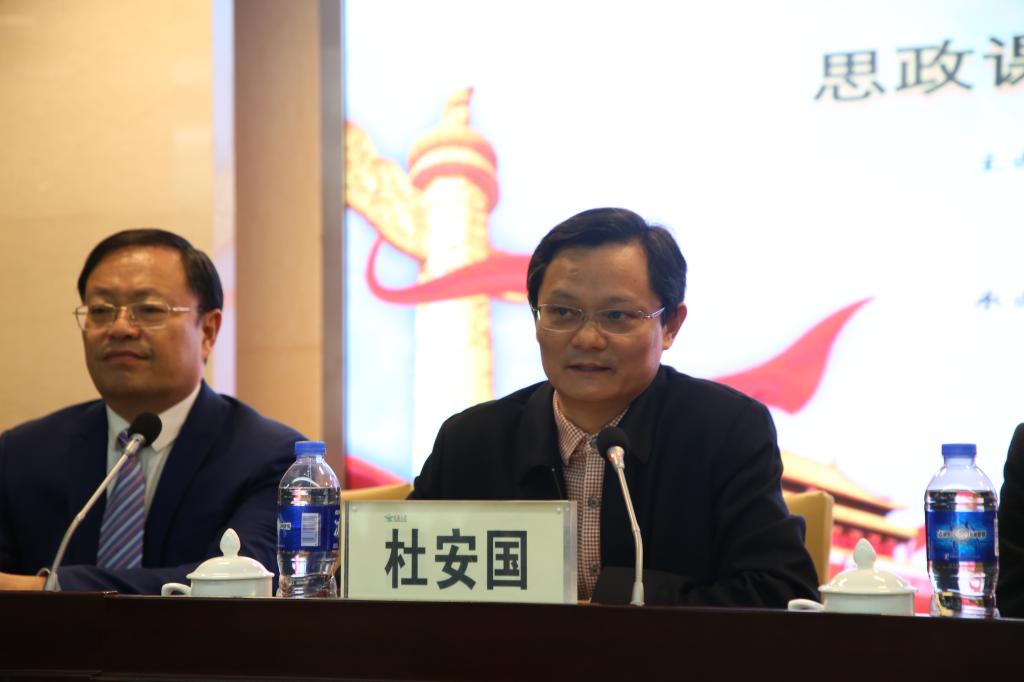 杜安国在开班式上致辞,介绍了我校的办学历史和优秀办学成果,重点介绍了十三五以来,尤其是今年以来,学校大力推进思政课建设,积极探索“矩阵式课堂理论教学”、用信息化手段提升“研练式实践教学”、实施混合式教学、巧用学习强国平台等思政课改革创新取得的新进展。